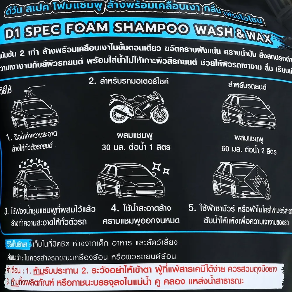 ดีวัน สเปค โฟมแชมพู เฟรชโอโซน สูตรเข้มข้น 2 เท่า ให้คุณล้างรถพร้อมเคลือบเงาได้ในขั้นตอนเดียว ช่วยขจัดคราบฟังแน่น คราบน้ำมัน สิ่งสกปรกต่าง ๆ<br />