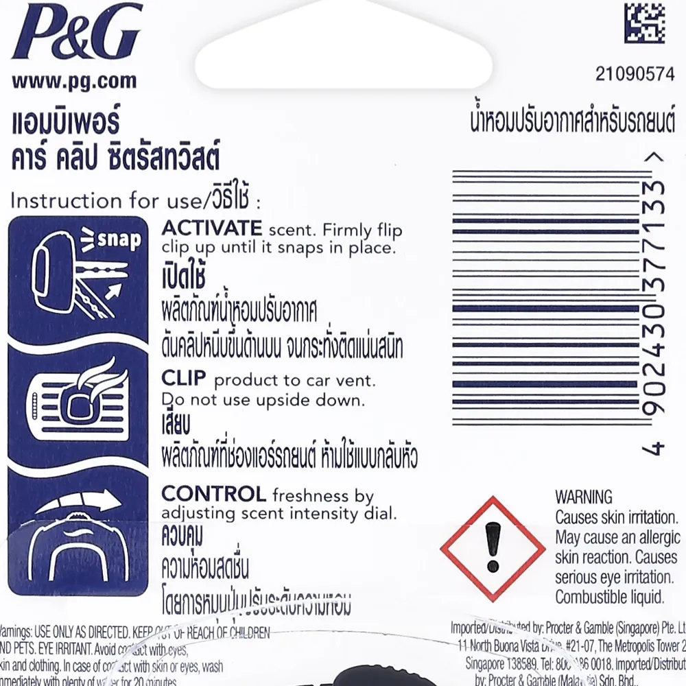 แอมบิเพอร์ น้ำหอมในรถยนต์ คลิปติดช่องแอร์ กลิ่นไลท์ ซิตรัส 2 มล.