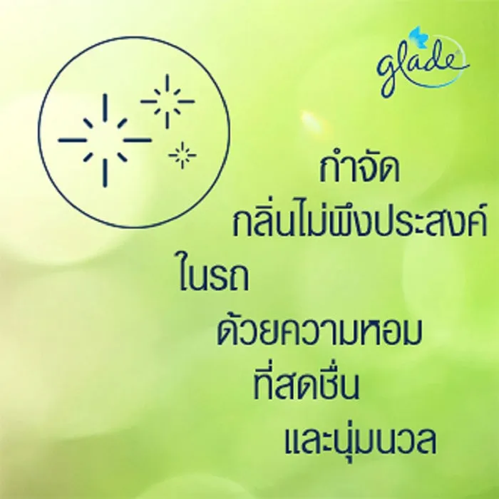 GLADE SPORT ผลิตภัณฑ์ปรับอากาศในรถยนต์ที่สามารถดูดซับและขจัดกลิ่นอันไม่พึงประสงค์ต่างๆ พร้อมทั้งสร้างความหอมสดชื่น ช่วยผ่อนคลาย หอมกระจายไปทั่วทั้งคันรถ ให้ทุกการเดินทางของคุณ มีความหอมสดชื่น มีความสุขไปทั้งวัน<br />