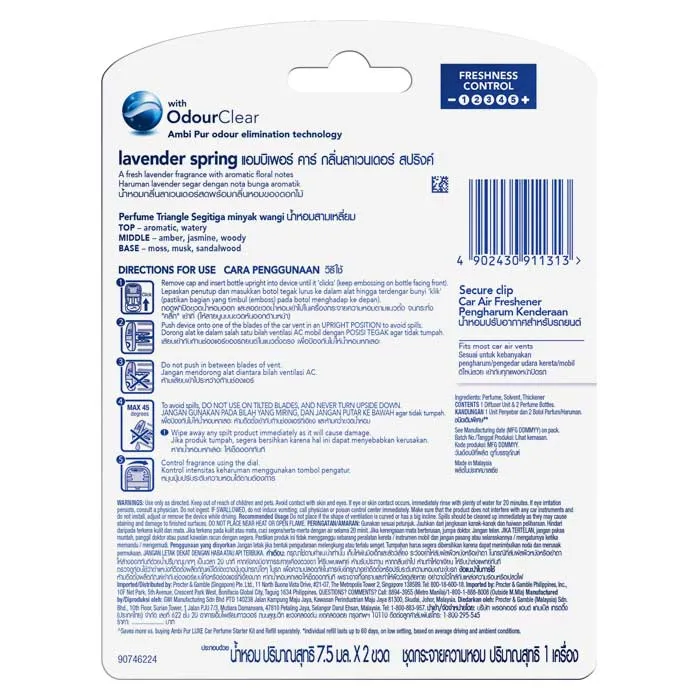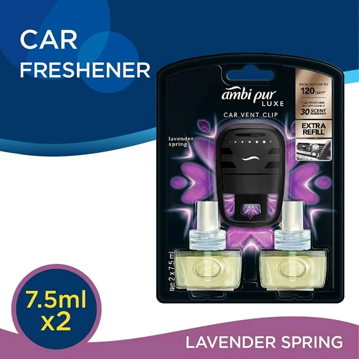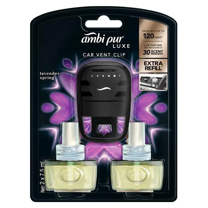 เปลี่ยนบรรยากาศในรถของคุณให้หอมสดชื่นทุกครั้งที่ขับรถขี่ เลือกใช้แอมบิเพอร์ คาร์ ทวินแพ็ครีฟิล กลิ่นลาเวนเดอร์ สปริงค์ ตัวช่วยดี ๆ ในการขจัดกลิ่นไม่พึงประสงค์ ให้ภายในรถของคุณเต็มเปี่ยมไปด้วยความรู้สึกสดชื่น ยาวนานถึง 120 วัน<br />