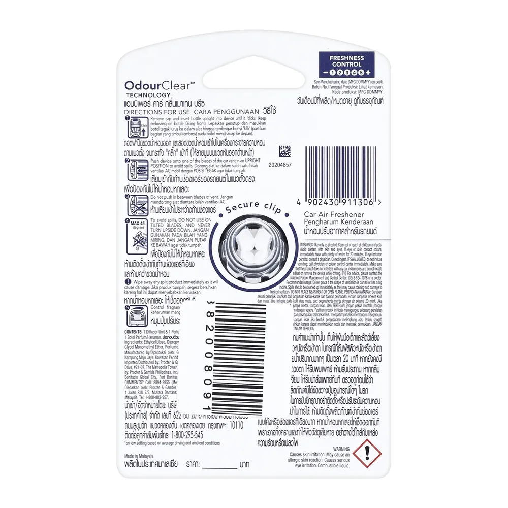 เปลี่ยนบรรยากาศในรถของคุณให้หอมสดชื่นทุกครั้งที่ขับรถขี่ เลือกใช้แอมบิเพอร์ คาร์ กลิ่นเมาเทน บรีซ ตัวช่วยดี ๆ ในการขจัดกลิ่นไม่พึงประสงค์ ให้ภายในรถของคุณเต็มเปี่ยมไปด้วยความรู้สึกสดชื่น ยาวนานถึง 60 วัน<br />