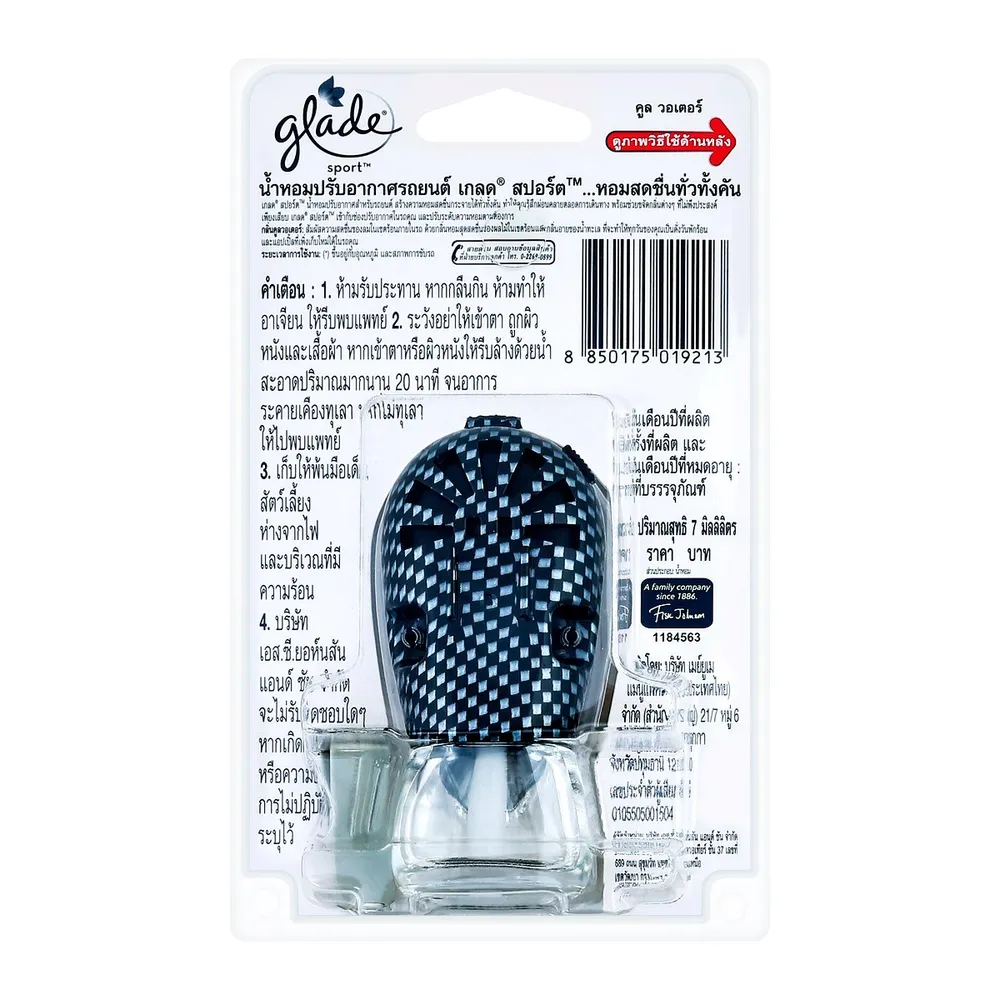 GLADE SPORT ผลิตภัณฑ์ปรับอากาศในรถยนต์ที่สามารถดูดซับและขจัดกลิ่นอันไม่พึงประสงค์ต่างๆ พร้อมทั้งสร้างความหอมสดชื่น ช่วยผ่อนคลาย หอมกระจายไปทั่วทั้งคันรถ ให้ทุกการเดินทางของคุณ มีความหอมสดชื่น มีความสุขไปทั้งวัน<br />