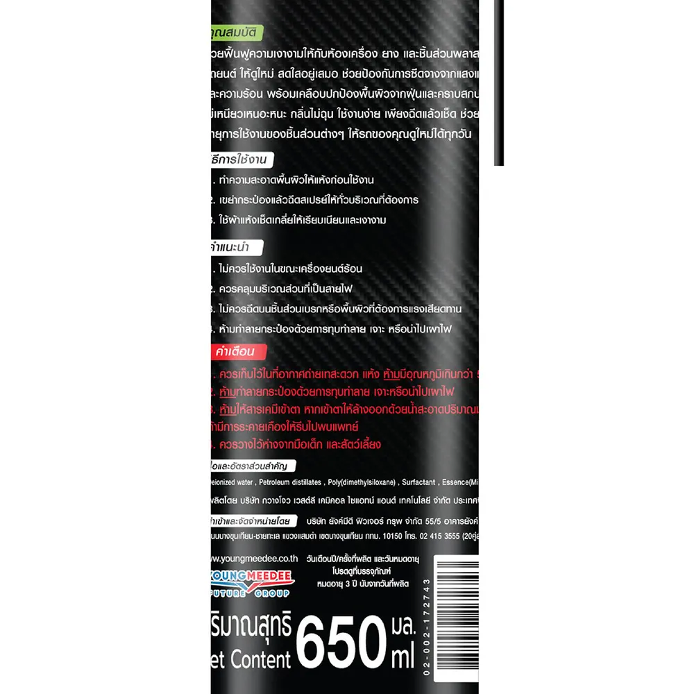 ช่วยฟื้นฟูความเงางามให้กับห้องเครื่อง ยาง และชิ้นส่วนพลาสติกรถยนต์ ให้ดูใหม่ สดใสอยู่เสมอ ช่วยป้องกันการซีดจางจากแสงแดด และความร้อน พร้อมเคลือบปกป้องพื้นผิวจากฝุ่นและคราบสกปรก<br />