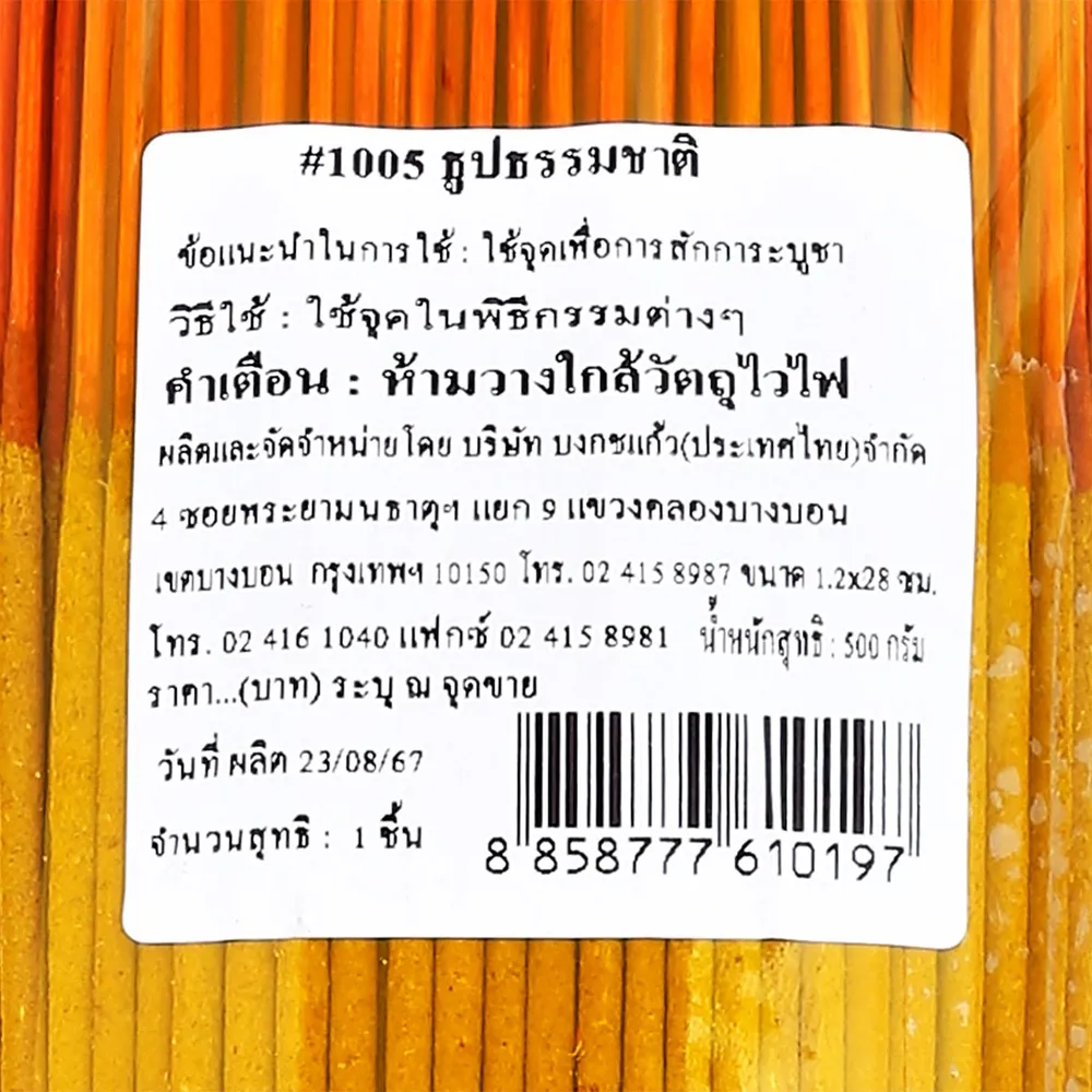 บงกชแก้ว ธูปจีน แบบสั้นกำใหญ่ รุ่น 1005 ธรรมชาติ