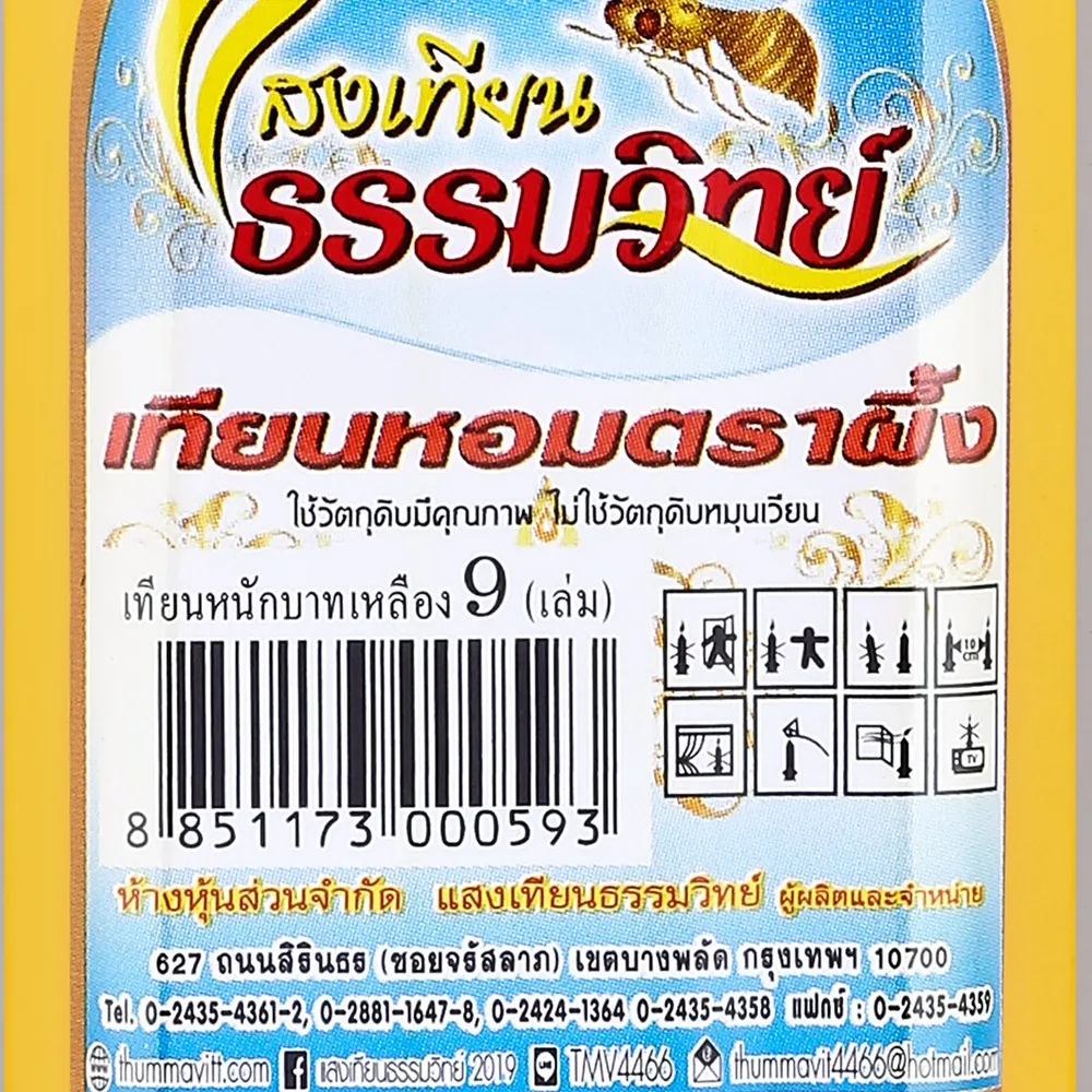 แสงเทียนธรรมวิทย์ เทียนหนักบาท สีเหลือง แพ็ค 9 เล่ม เหมาะสำหรับ เทียนหอมคุณภาพ เหมาะสำหรับใช้ถวายพระ หรือใช้ในพิธีการต่างๆ ใช้งานได้งาน หอม จุดไฟติดง่าย ใช้งานได้ดี<br />