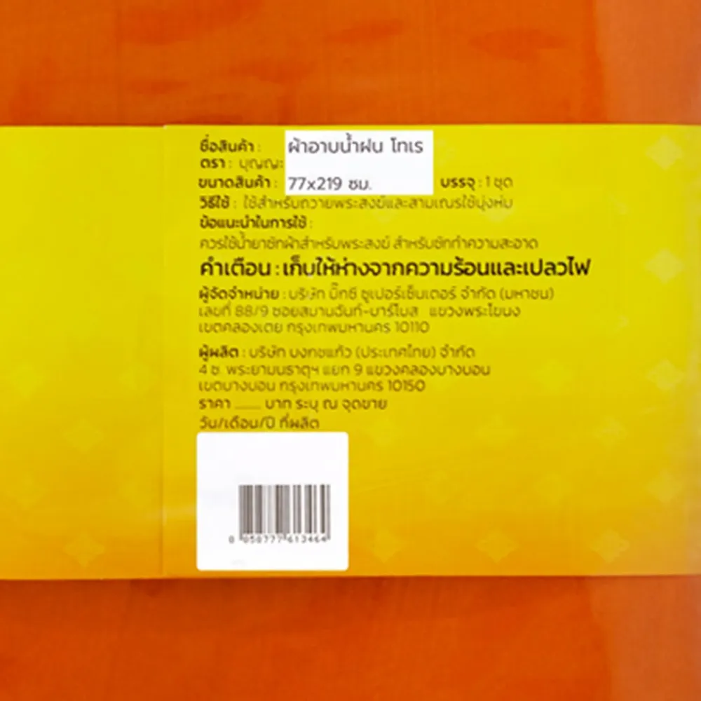 <p>บุญญะ ผ้าอาบน้ำฝน โทเร 77 x 219 ซม.<br /> <br /> ผลิตจากเนื้อผ้าคุณภาพดีได้มาตรฐาน ถูกต้องตามหลักพระธรรมวินัยสงฆ์<br /> <br /> - ผ้าอาบน้ำฝน โทเร<br /> - เครื่องนุ่งห่งสำหรับพระสงฆ์<br /> - ผ้านุ่มใส่สบายไม่บาดผิว<br /> <br /> <span style="color: #ff0000;">*บริษัทฯ ขอสงวนสิทธิ์ในการปรับเปลี่ยนราคาจำหน่ายและโปรโมชั่น รวมถึงแพ็คเกจและปริมาณสินค้าจากผู้ผลิตได้ตามความเหมาะสม โดยไม่จำเป็นต้องแจ้งให้ทราบล่วงหน้า</span><br /> <br /> *ขอสงวนสิทธิ์ในการเลือกแบบสินค้า ลูกค้าจะได้รับสินค้าเพียงชิ้นเดียว และทางเราจะจัดส่งตามสต๊อกสินค้าโดยไม่ได้แจ้งให้ทราบล่วงหน้า<br /> <br /> *สีของสินค้าอาจมีความแตกต่าง ขึ้นอยู่กับการตั้งค่าของแต่ละหน้าจอ และภาพประกอบใช้เพื่อการโฆษณาเท่านั้น</p>