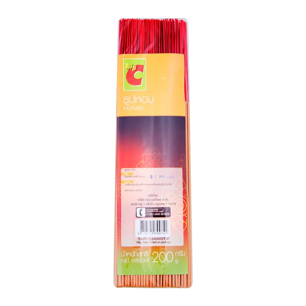 BIG C ธูปแหนบกลม <br /> - ขนาด 200 กรัม <br /> - ใช้ได้ทั้งจุดบูชาหรือเพื่อความผ่อนคลาย เหมาะสำหรับจุดใช้ไหว้พระ<br /> เพื่อความหอมในห้องนอน ห้องรับแขก หรือสปา ไม้ธูปลักษณะก้านกลม <br /> แท่งเล็กทำให้ควันน้อย และปริมาณมากกว่าธูปบรรจุทั่วไป