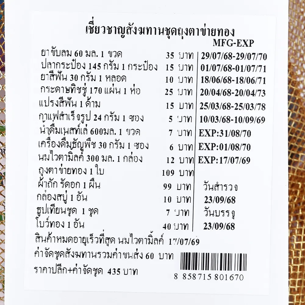 เชี่ยวชาญ ชุดสังฆทานถุงตาข่ายทอง