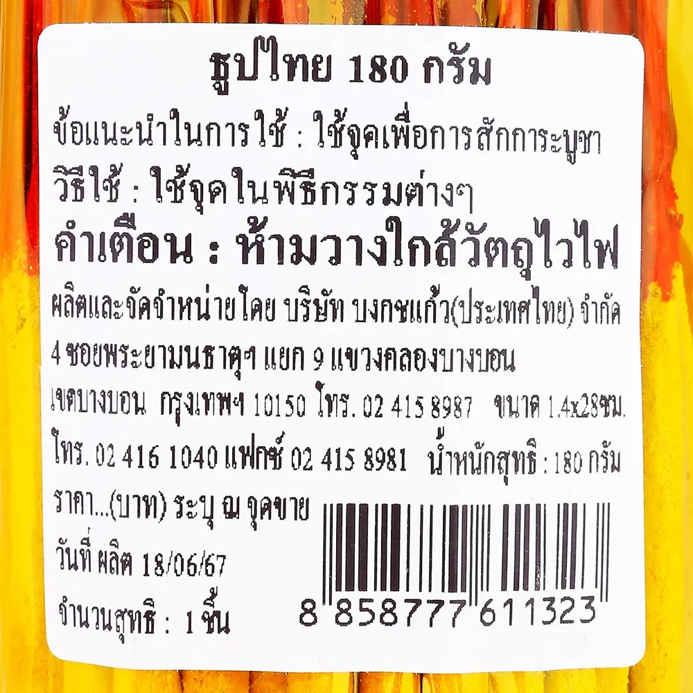 <p>บงกชแก้ว ธูปกำไทย 180 ก.<br />