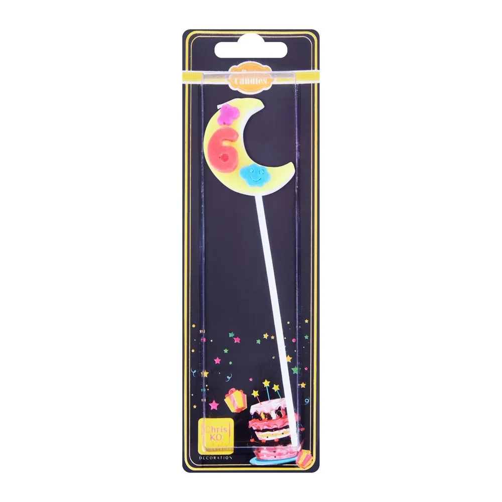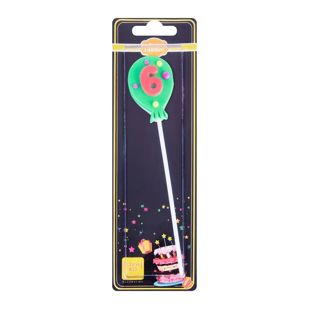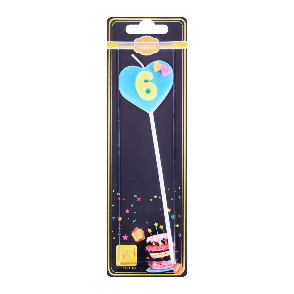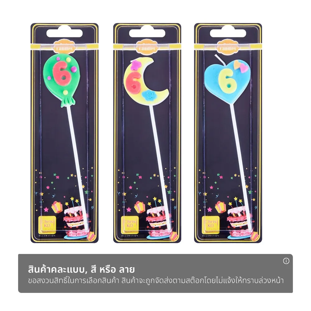 เทียนตัวเลขก้านยาว เบอร์ 6 คละแบบ