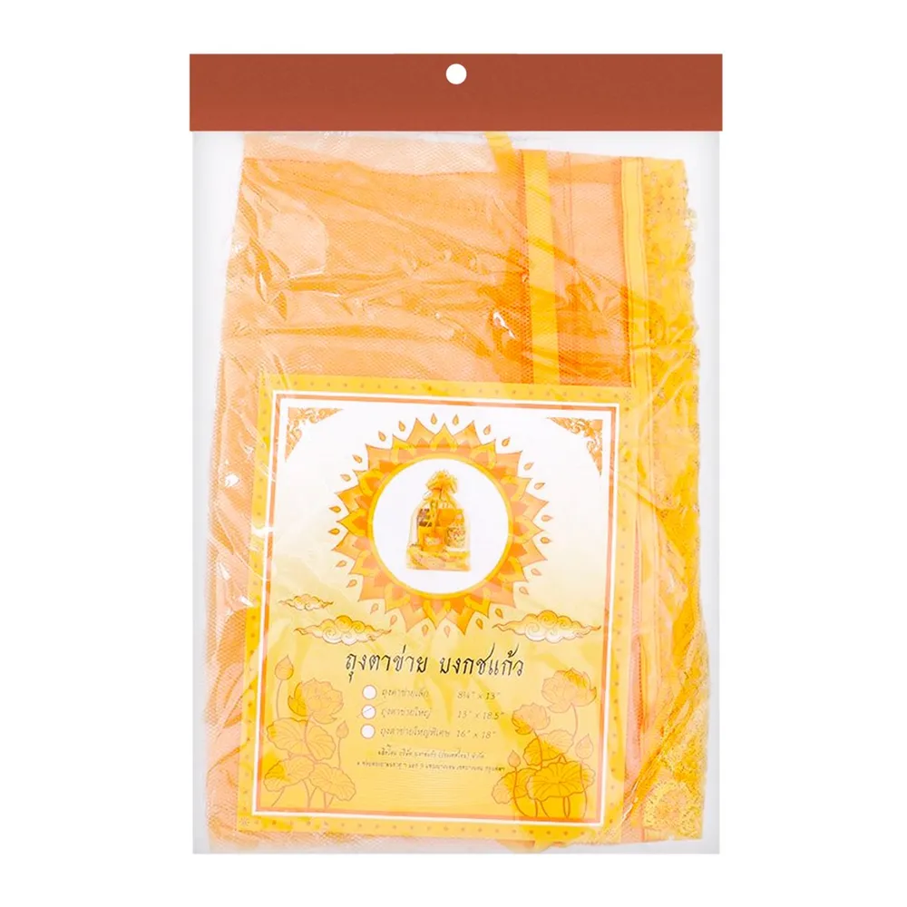 ถุงผ้าตาข่ายสีทอง เหมาะกับการห่อของในงานพิธีการหรือของสำหรับถวายพระ เนื้อผ้าแข็งแรงมีคุณภาพ ใช้งานสะดวก<br />