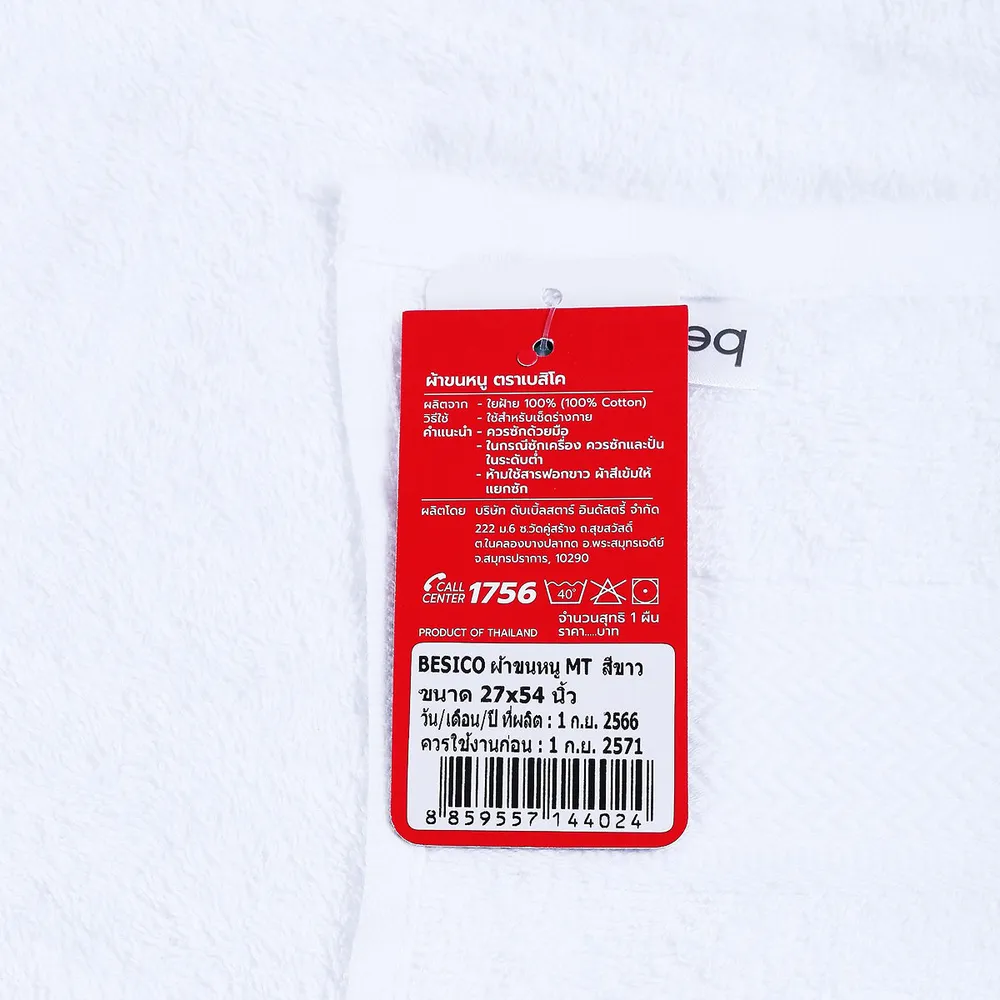 เบสิโค ผ้าขนหนู MT ขนาด 27x54 นิ้ว สีขาว