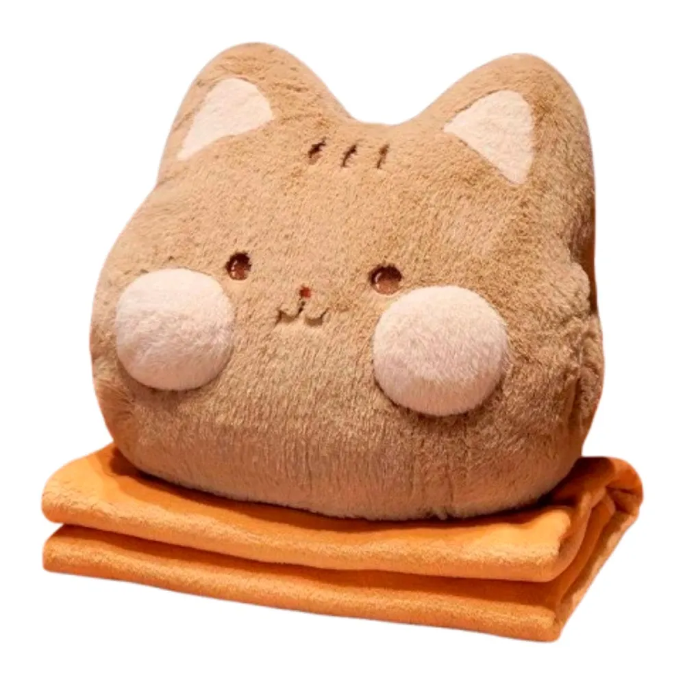 เทคทอยส์ หมอนผ้าห่มรูปทรงแมว สีน้ำตาล