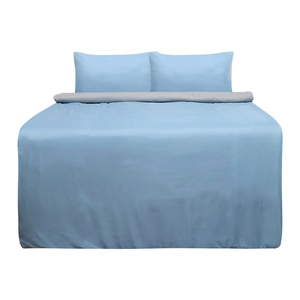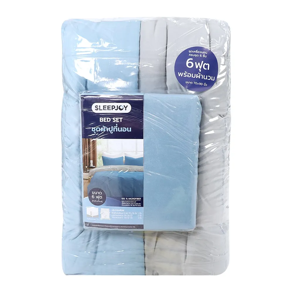 สลีปจอย ชุดผ้าปูที่นอน 6 ฟุต พร้อมผ้าห่มนวม 70 x 90 นิ้ว สีฟ้า-เทา