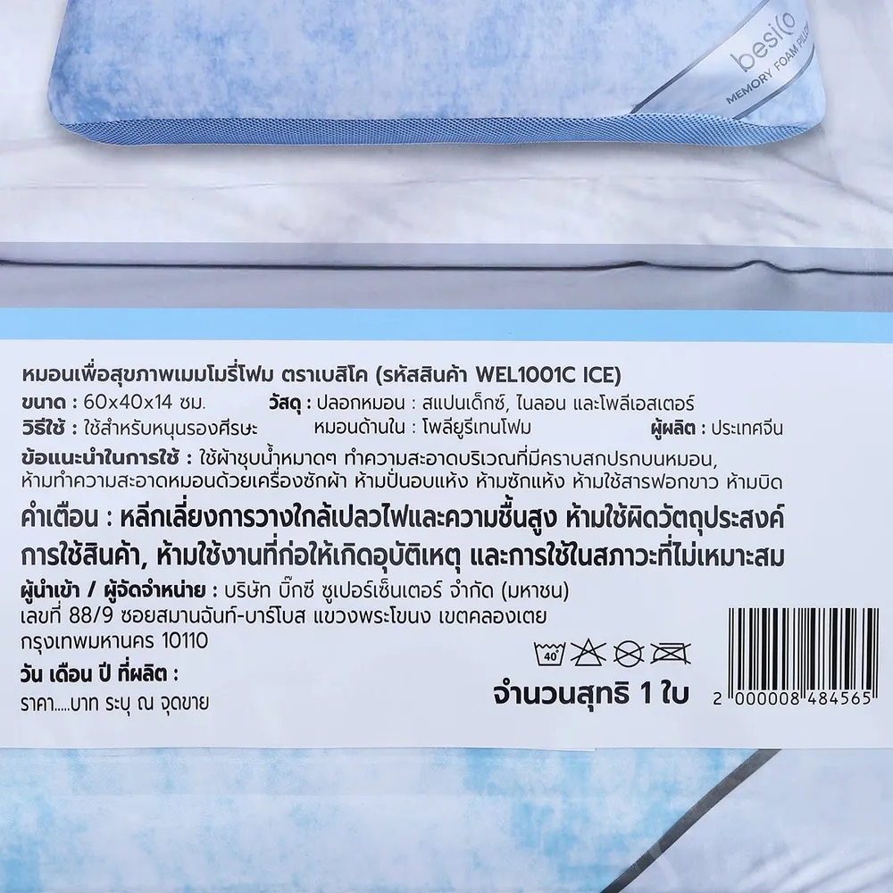 เบสิโค หมอนเย็นเมมโมรี่โฟม รุ่น WEL1001C ICE สีขาว