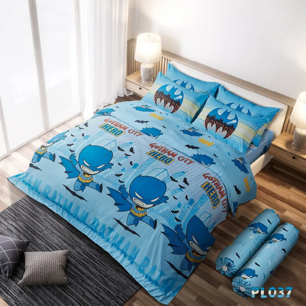 ซาติน พลัส ชุดผ้าปูที่นอน 6 ฟุต x 5 ชิ้น + ผ้านวม 90 x 100 นิ้ว รุ่น PL037 สีฟ้า