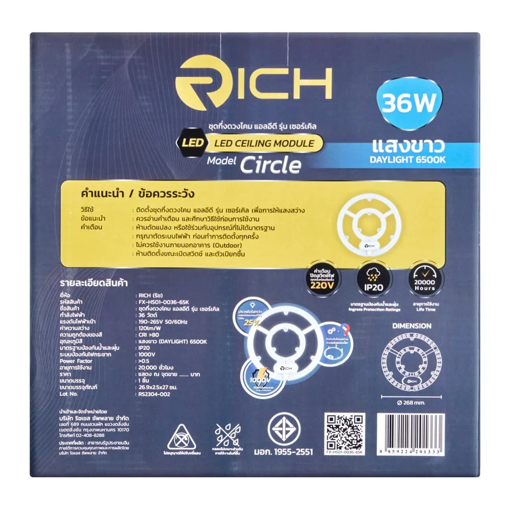 ริช ชุดกึ่งดวงโคม แอลอีดี รุ่นเซอร์เคิล แสงเดย์ไลท์ 36 วัตต์