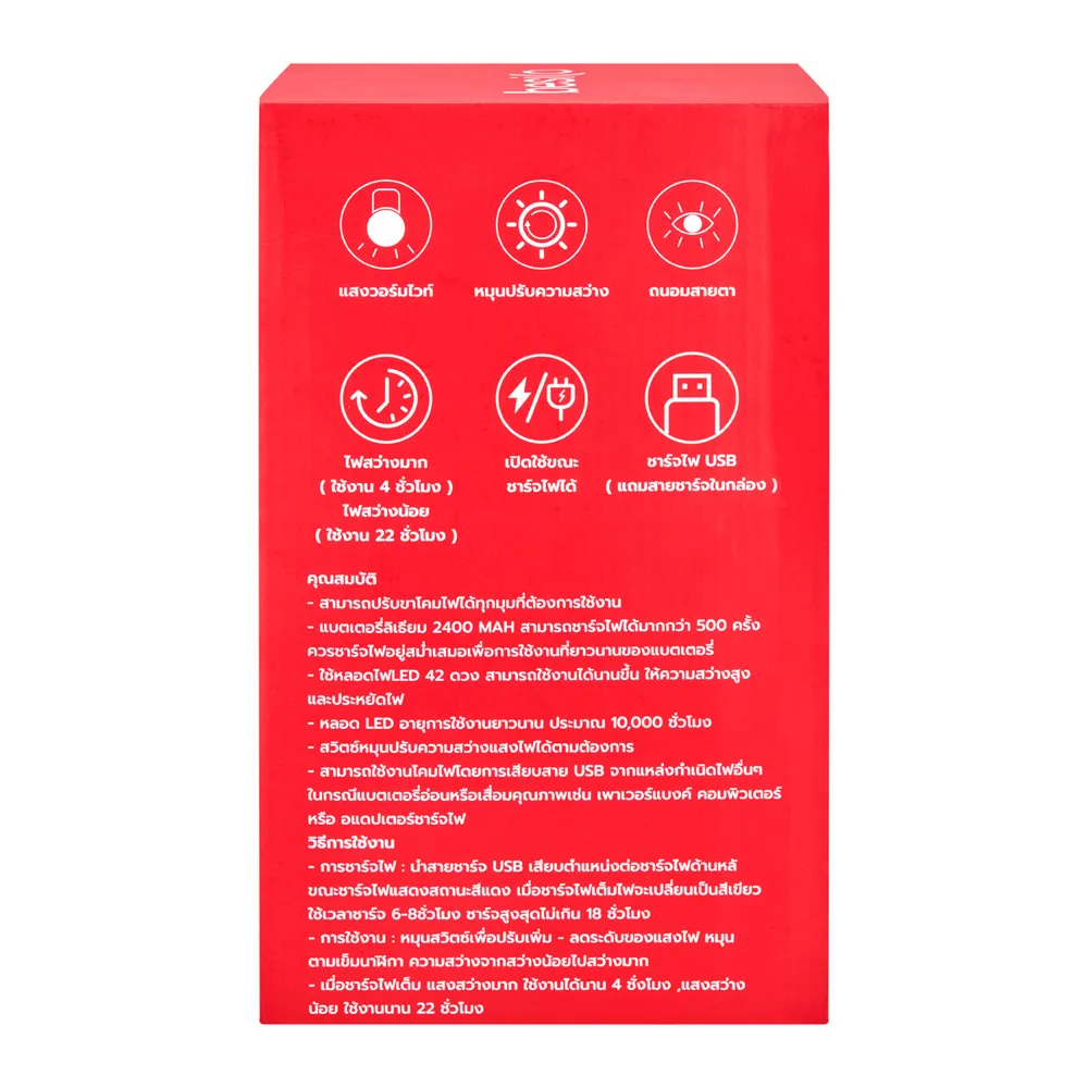 - หลอดไฟ LED 42 ดวง สายไฟ - USB (ไม่รวมอแดปเตอร์ชาร์จไฟ)<br />