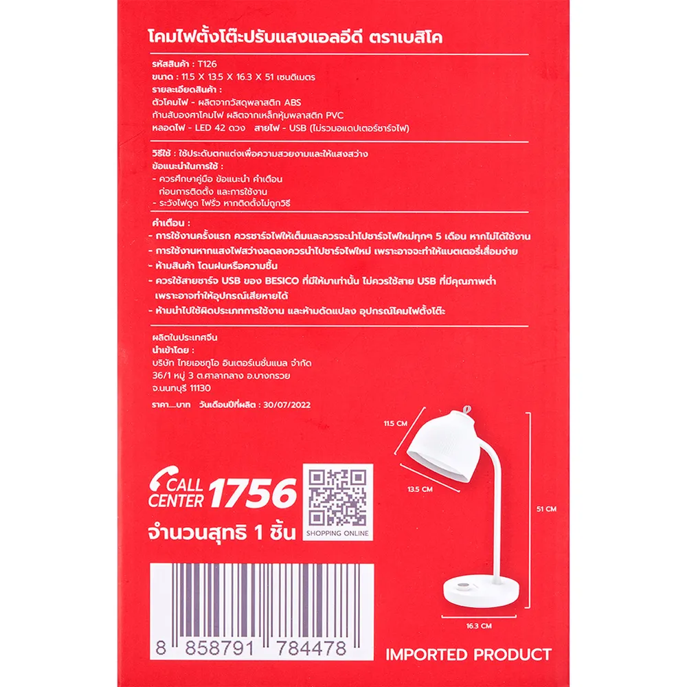 - เบสิโค โคมไฟตั้งโต๊ะปรับแสงแอลอีดี รุ่น T126<br />