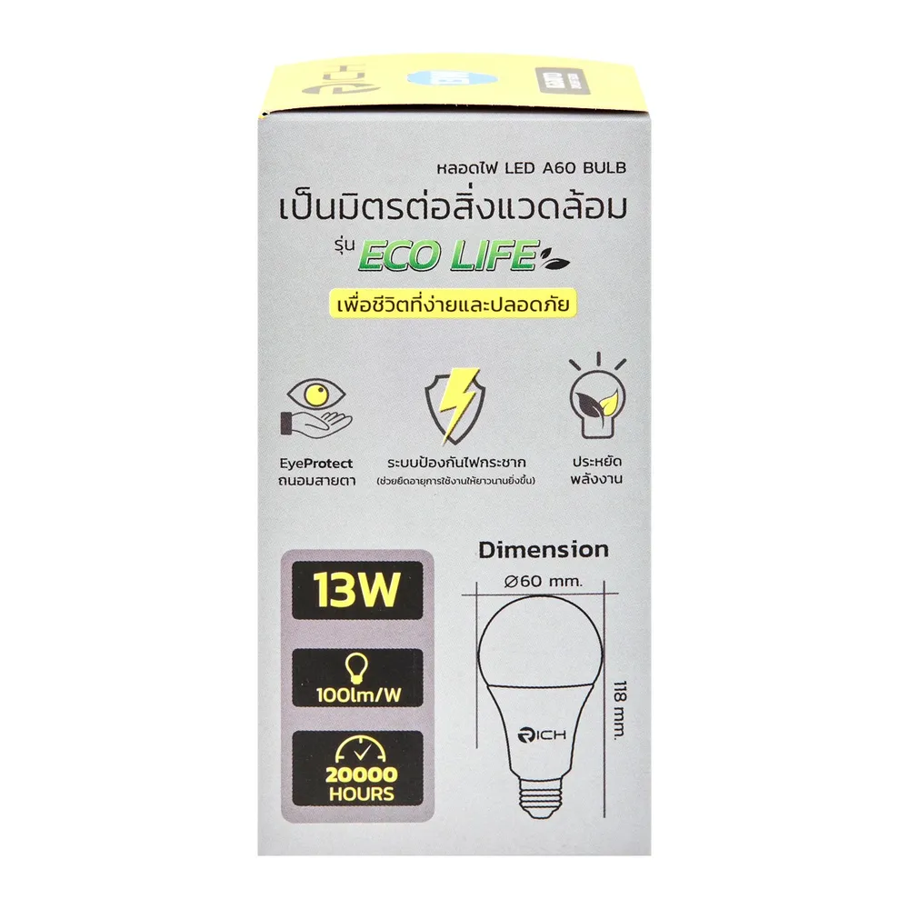 ริช หลอดไฟแอลอีดี รุ่น อีโค่ไลฟ์ 13 วัตต์ แสงขาว เดย์ไลท์ 6500K
