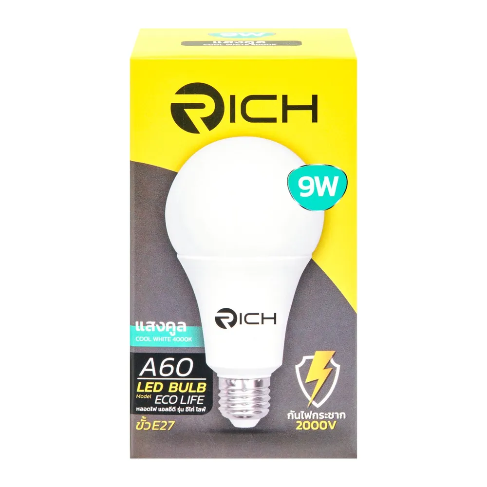 <p>ริช หลอดไฟแอลอีดี รุ่น อีโค่ไลฟ์ 9 วัตต์ แสงคูล ไวท์ 4000K<br />