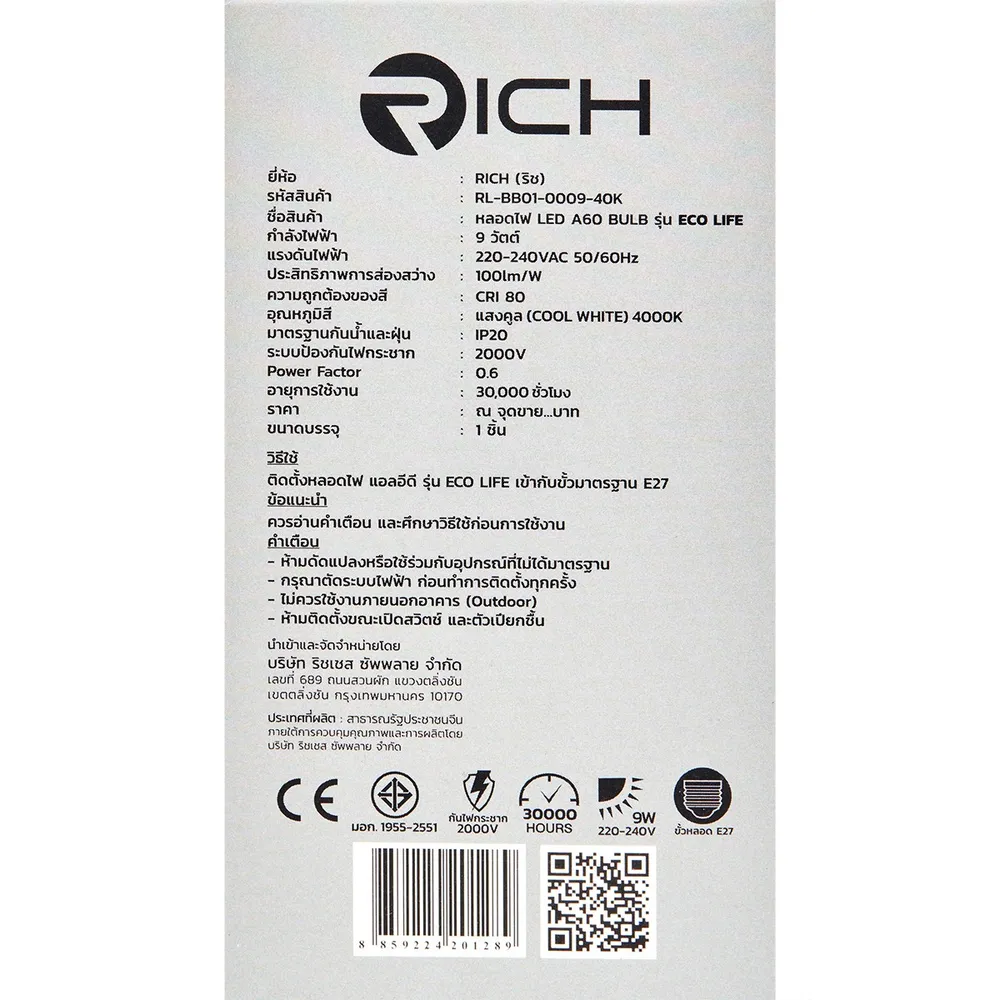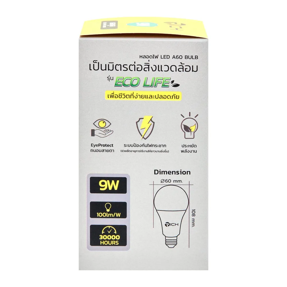 ริช หลอดไฟแอลอีดี รุ่น อีโค่ไลฟ์ 9 วัตต์ แสงคูล ไวท์ 4000K