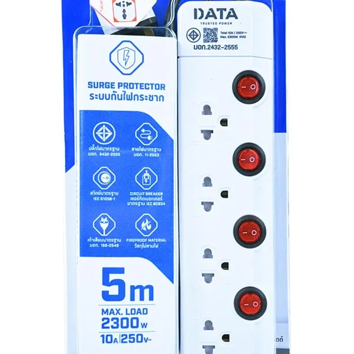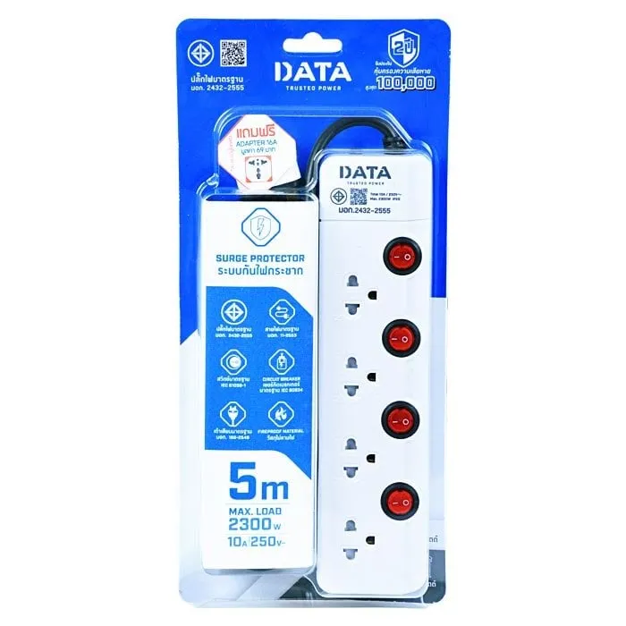 สะดวกสบายกับการใช้งานเครื่องใช้ไฟฟ้าต่างๆ ด้วย ดาต้า ปลั๊กไฟ 4 ช่อง 4 สวิตช์ สายไฟ 5 เมตร ผลิตภัณฑ์ปลั๊กต่อพ่วงคุณภาพเยี่ยมจากดาต้า แบรนด์คุณภาพ โดยมีความปลอดภัยตามมาตรฐาน มอก. สะดวกสบาย แข็งแรง ใช้งานได้นาน<br />