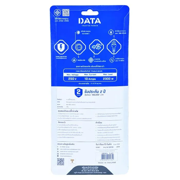 - กำลังไฟฟ้า 10A / 250V เหมาะสำหรับการใช้กำลังไฟไม่เกิน 2300 วัตต์<br />