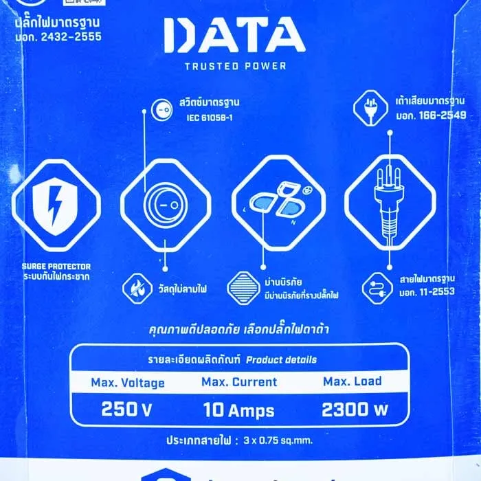 - ปลั๊กไฟมาตรฐาน ที่มีความปลอดภัยตามมาตรฐาน มอก. เลขที่ 2432-2555<br />