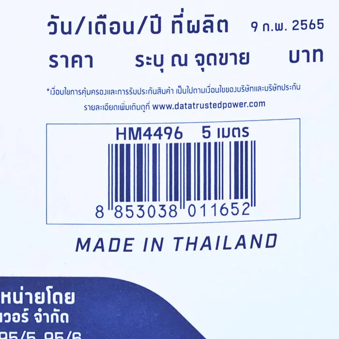 - ดาต้า ปลั๊กไฟ 4 ช่อง 4 สวิตช์ สายไฟ 5 ม. รุ่น HM4496M5W สีขาว<br />