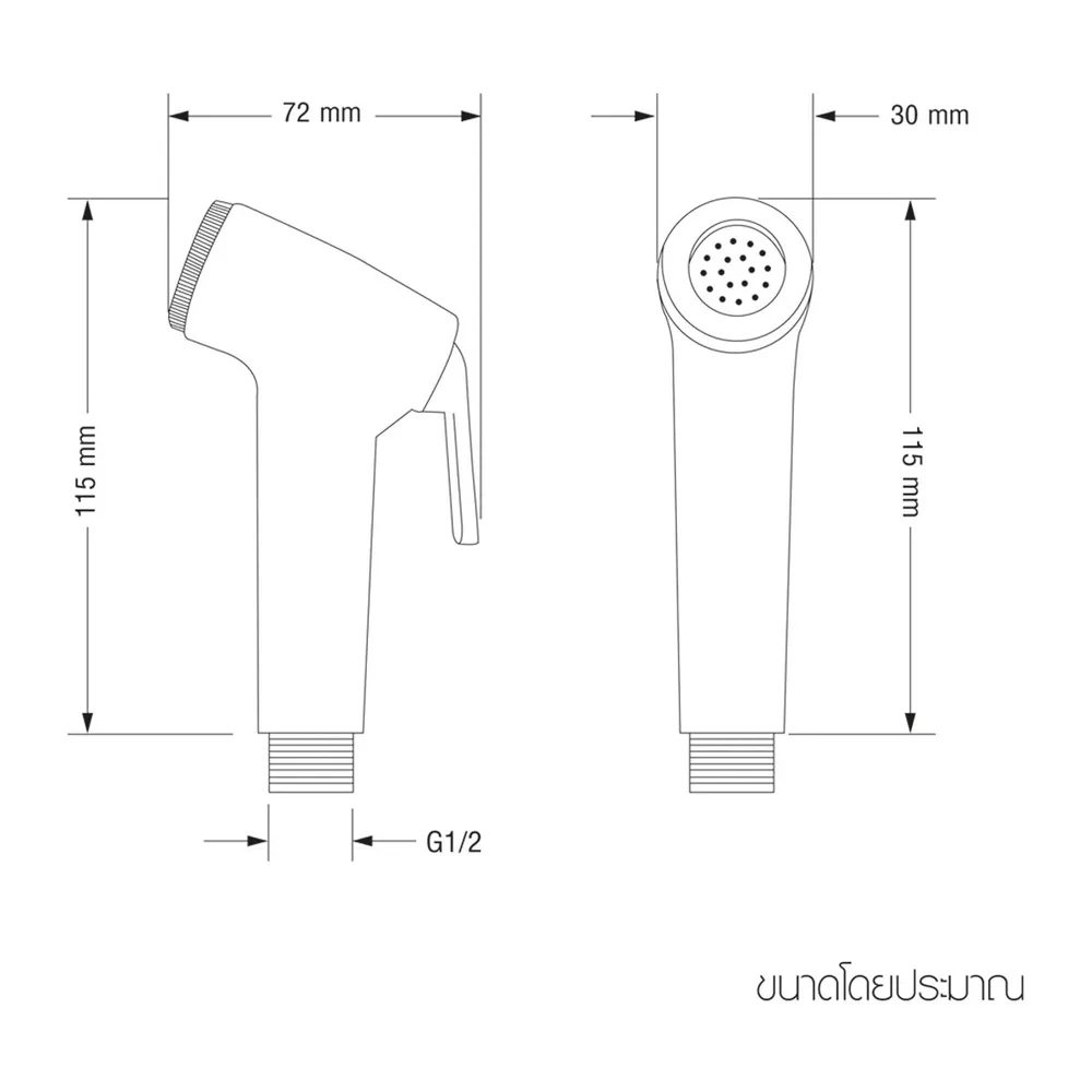 - สายฉีดชำระ: สาย PVC ยาว 1.2 ม.<br />