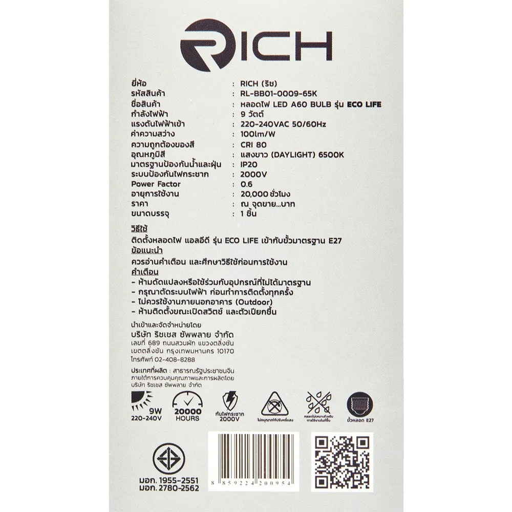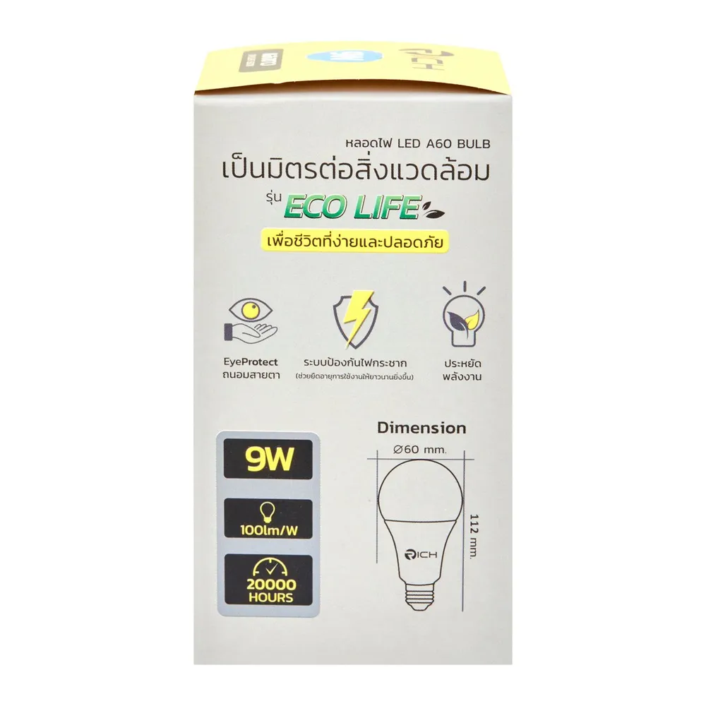 ริช หลอดไฟแอลอีดี รุ่น อีโค่ไลฟ์ 9 วัตต์ แสงขาว เดย์ไลท์ 6500K
