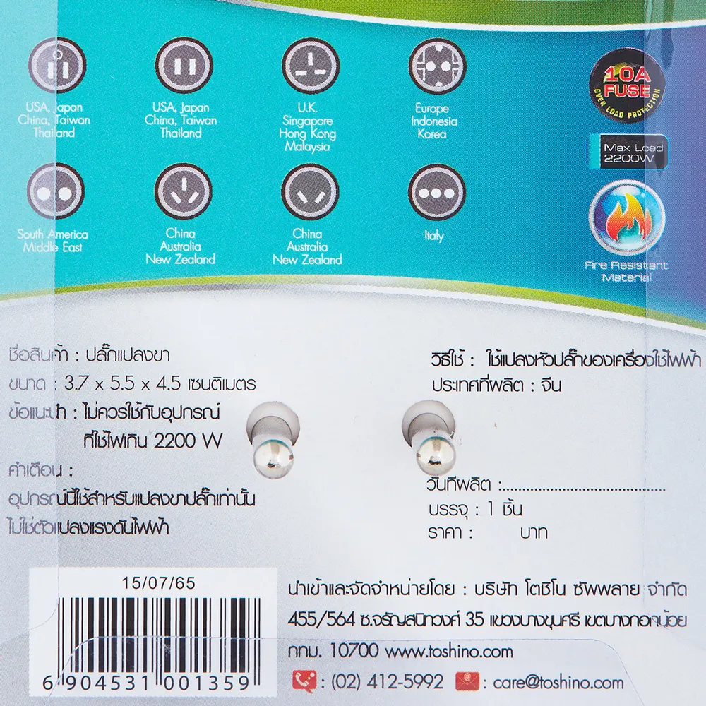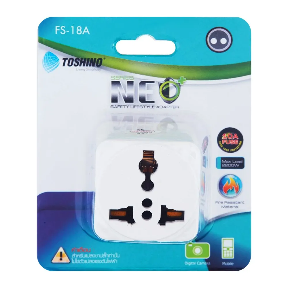 โตชิโน่ ปลั๊กแปลง 2 ขากลม มีฟิวส์ รุ่น FS-18A