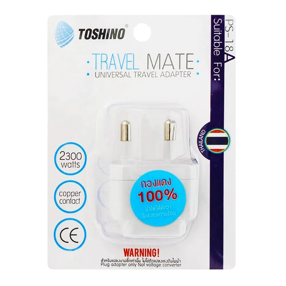 เดินทางทั่วโลกได้อย่างสุขใจเมื่อมีโตชิโน ปลั๊กแปลง ขากลม รุ่น PS-18A&nbsp;ปลั๊กแปลงขาใช้สำหรับแปลงขาปลั๊กเครื่องใช้ไฟฟ้าต่างๆ รับไฟได้ 2000W ผลิตจากทองเหลืองเเท้ 100% ใช้งานสะดวกสบาย พกติดตัวง่าย ใช้ได้กับปลั๊กประเทศ USA,Japan,China,Taiwan,Thailand รับหัวปลั๊กได้ 16 รูปแบบ<br />