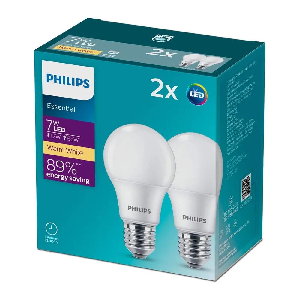 ฟิลิปส์ หลอดไฟแอลอีดี 7 วัตต์ ขั้ว E27 แพ็ค 2 แสงวอร์มไวท์