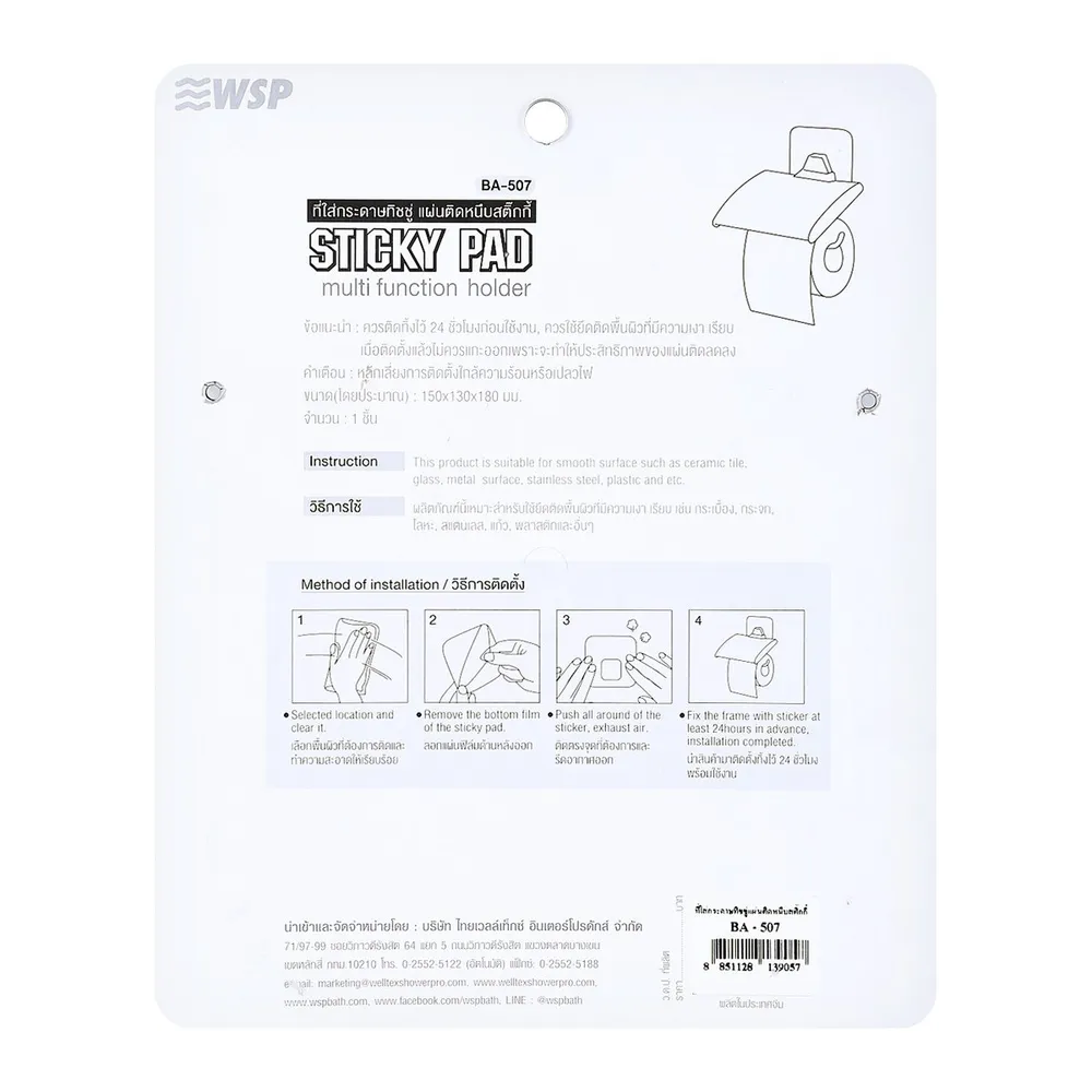 <p>ดับบลิวเอสพี ที่แขวนทิชชู่ พร้อมแผ่นติดผนัง รุ่น BA-507 สีขาว<br />