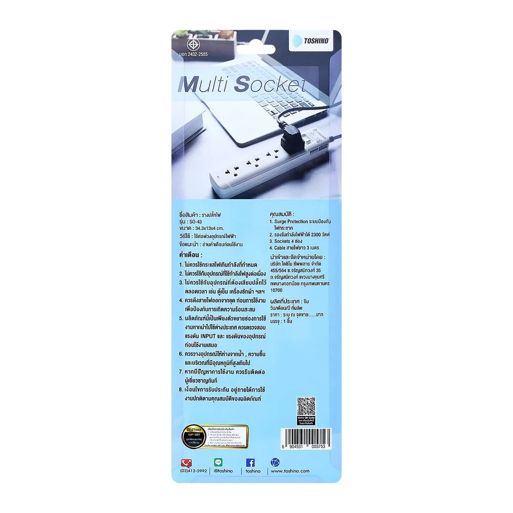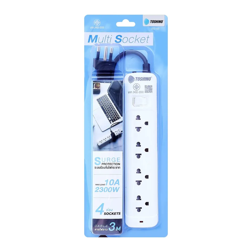 โตชิโน รางปลั๊กไฟ รุ่น SO-43 4 ช่อง 1 สวิตช์ สายไฟยาว 3 ม.
