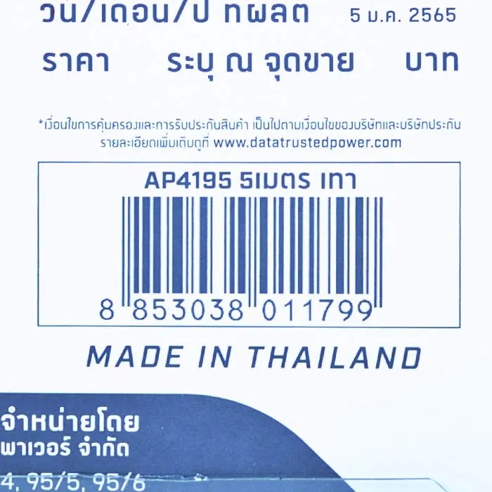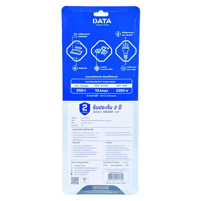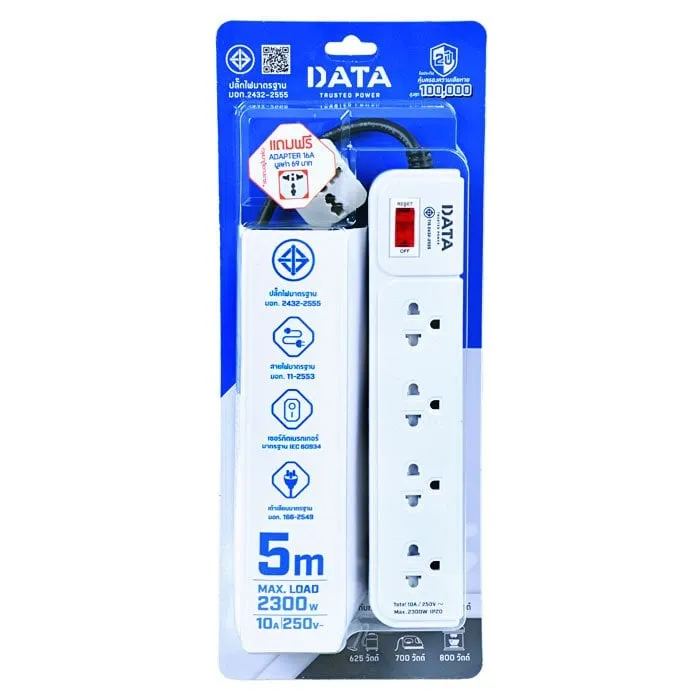 ดาต้า ปลั๊กไฟ 4 ช่อง 1 สวิตช์ สายไฟยาว 5 ม. รุ่น AP4195