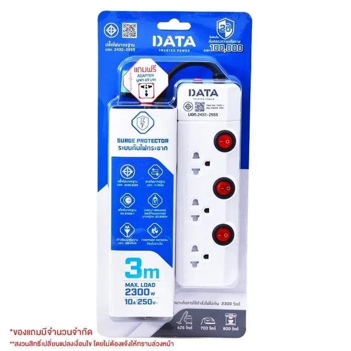 สะดวกสบายกับการใช้งานเครื่องใช้ไฟฟ้าต่างๆ ด้วย ดาต้า ปลั๊กไฟ 3 ช่อง 3 สวิตช์ สายไฟ 3 เมตร ผลิตภัณฑ์ปลั๊กต่อพ่วงคุณภาพเยี่ยมจากดาต้า แบรนด์คุณภาพ โดยมีความปลอดภัยตามมาตรฐาน มอก. สะดวกสบาย แข็งแรง ใช้งานได้นาน<br />