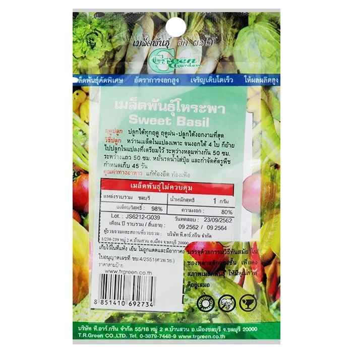กรีน การ์เด้น เมล็ดพันธุ์โหระพา บรรจุ 1 ก.