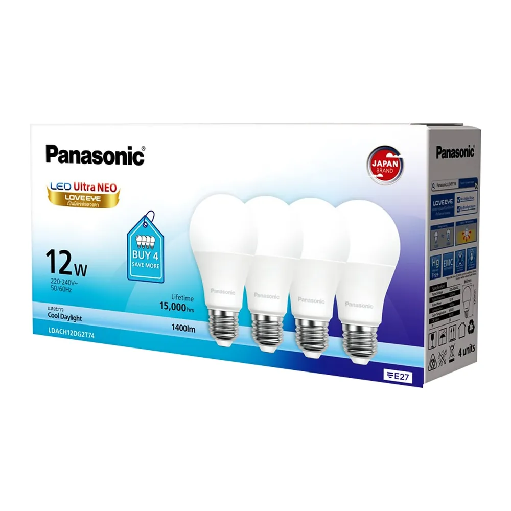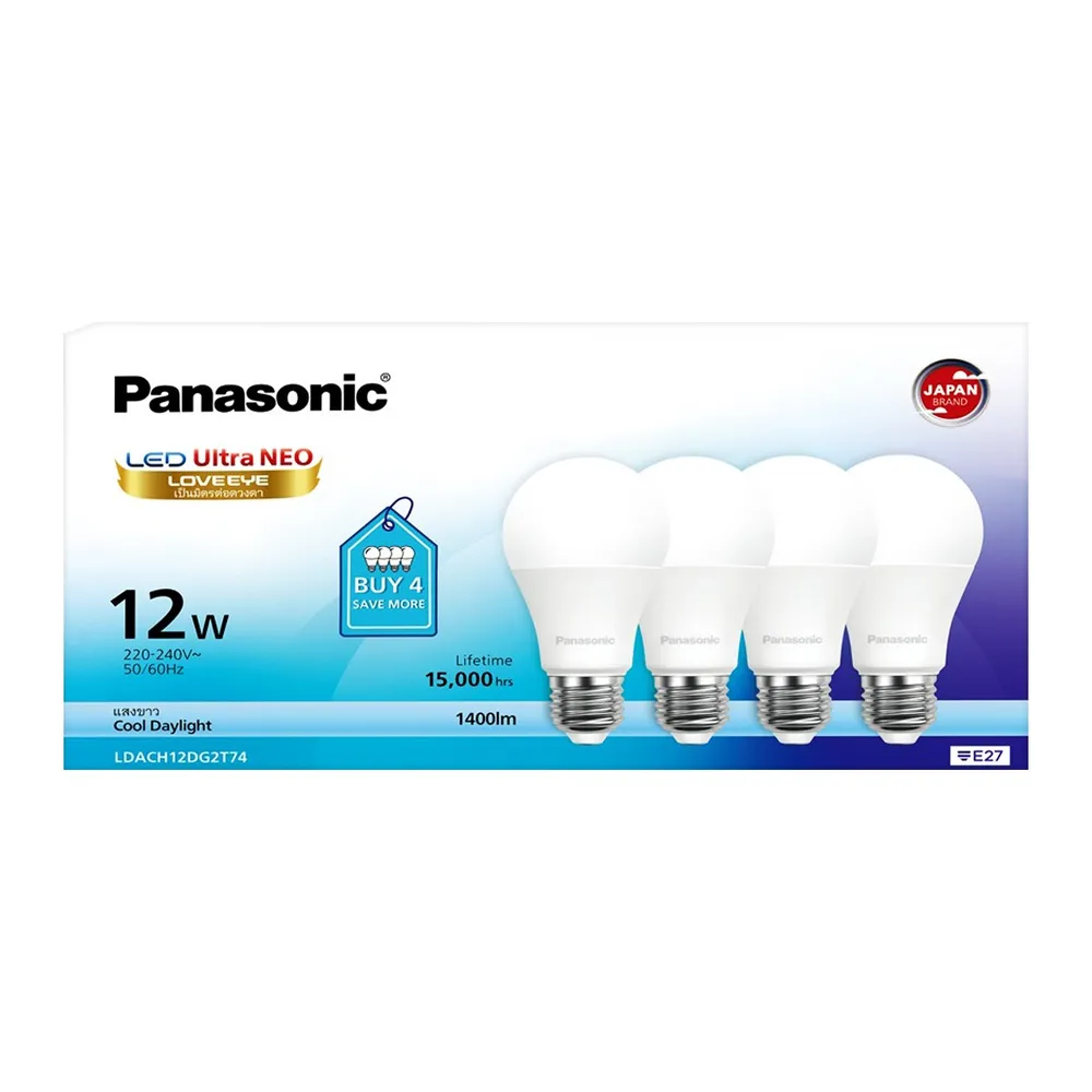 พานาโซนิค หลอดไฟ LED Ultra 12 วัตต์ แสงสีขาว แพ็ค 4 ชิ้น