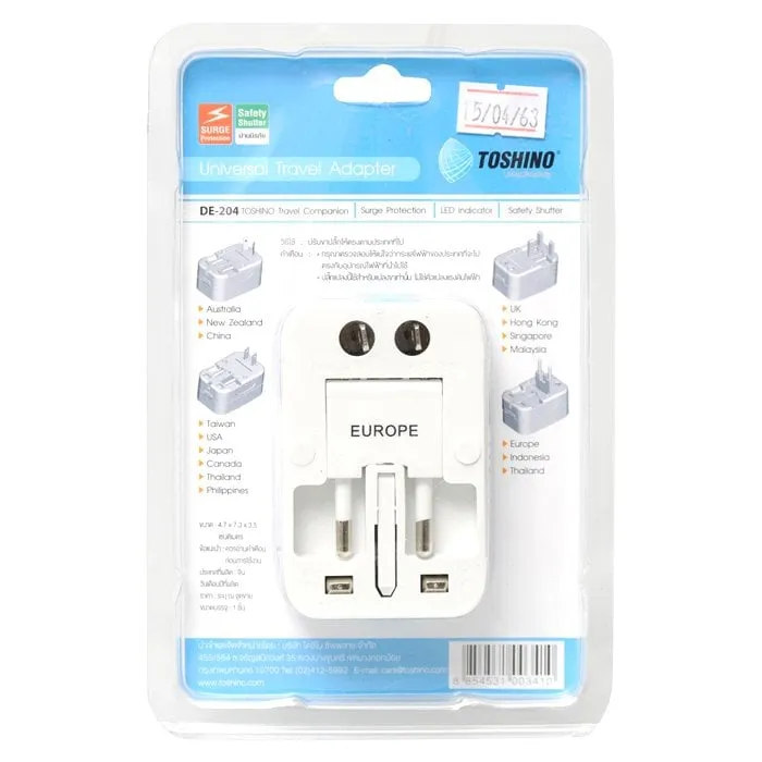 <p>โตชิโน ปลั๊กแปลง Travel Adapter รุ่น DE-204 4 in 1 ขนาด 4.7 x 7.3 x 3.5 ซม.<br />