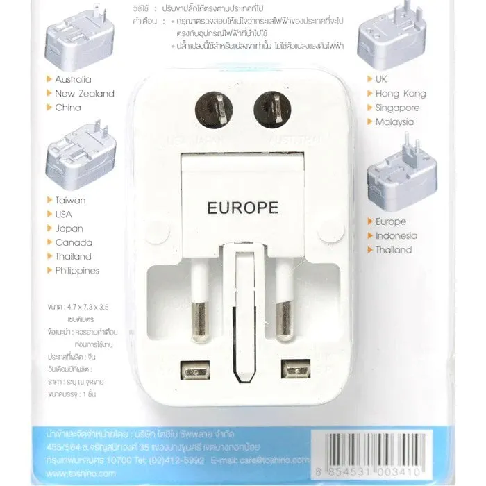 โตชิโน ปลั๊กแปลง Travel Adapter รุ่น DE-204 4 in 1 ขนาด 4.7 x 7.3 x 3.5 ซม.