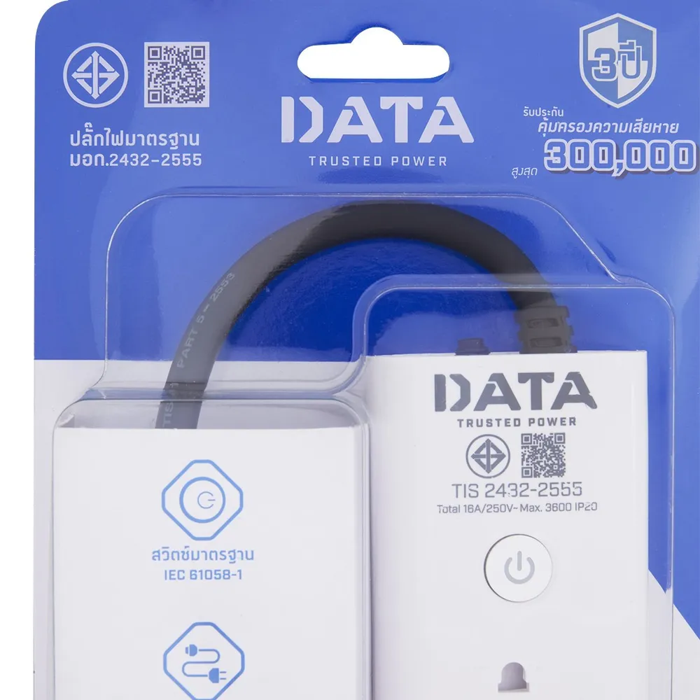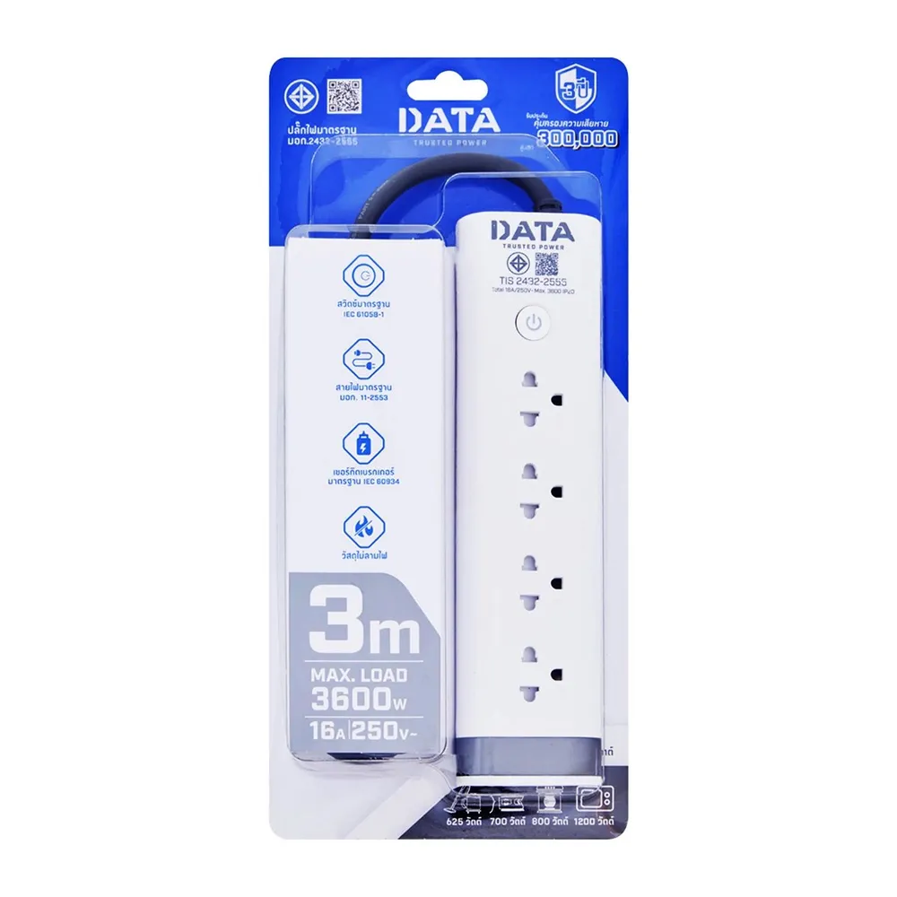 ดาต้า ปลั๊กไฟ 1 สวิตช์ 4 ช่อง สายไฟ 3 เมตร สีขาว