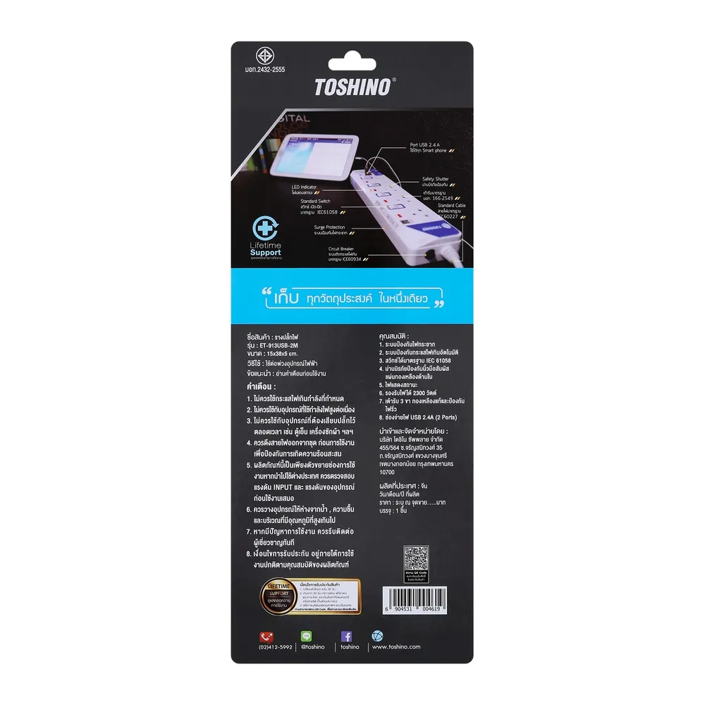 <p>โทชิโน ปลั๊กไฟ 3 ช่อง 3 สวิตช์ 2 ยูเอสบี<br />