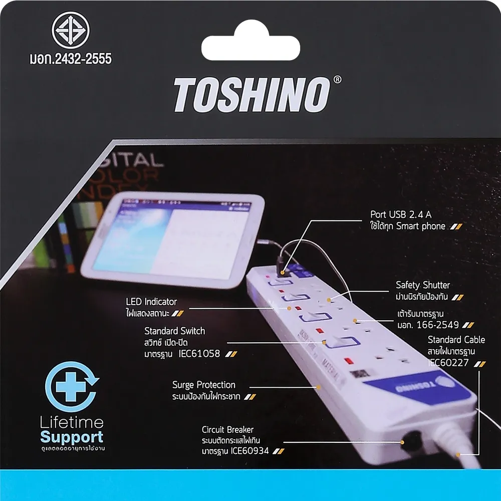 โทชิโน ปลั๊กไฟ 3 ช่อง 3 สวิตช์ 2 ยูเอสบี