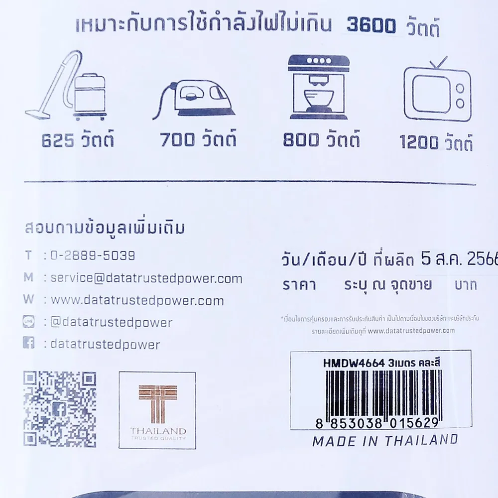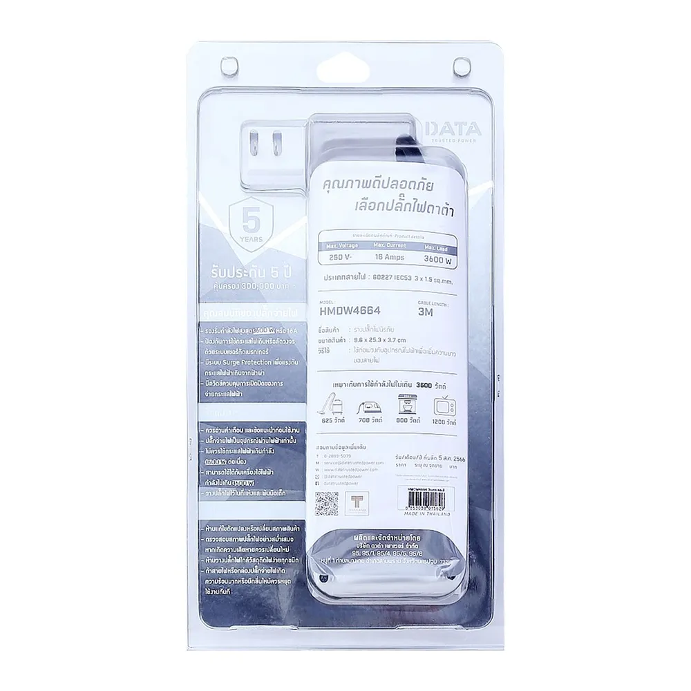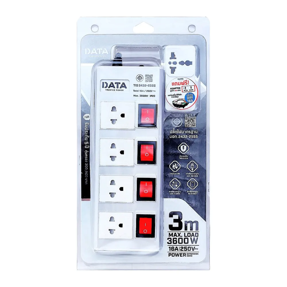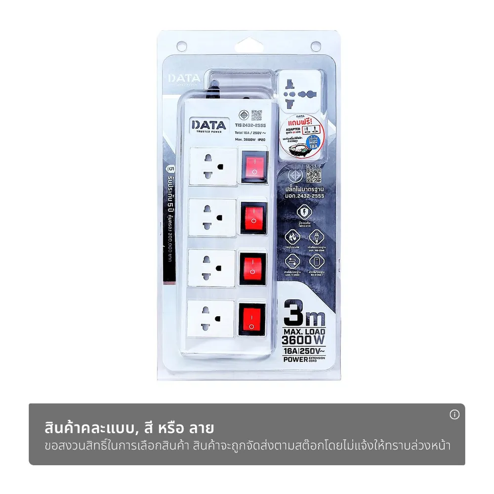 ดาต้า รางปลั๊กไฟ 4ช่อง 4สวิตซ์ รุ่น HMDW4664 ขนาด 3 ม. (สินค้าคละสี ไม่สามารถเลือกได้)