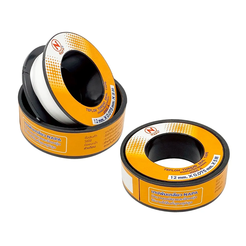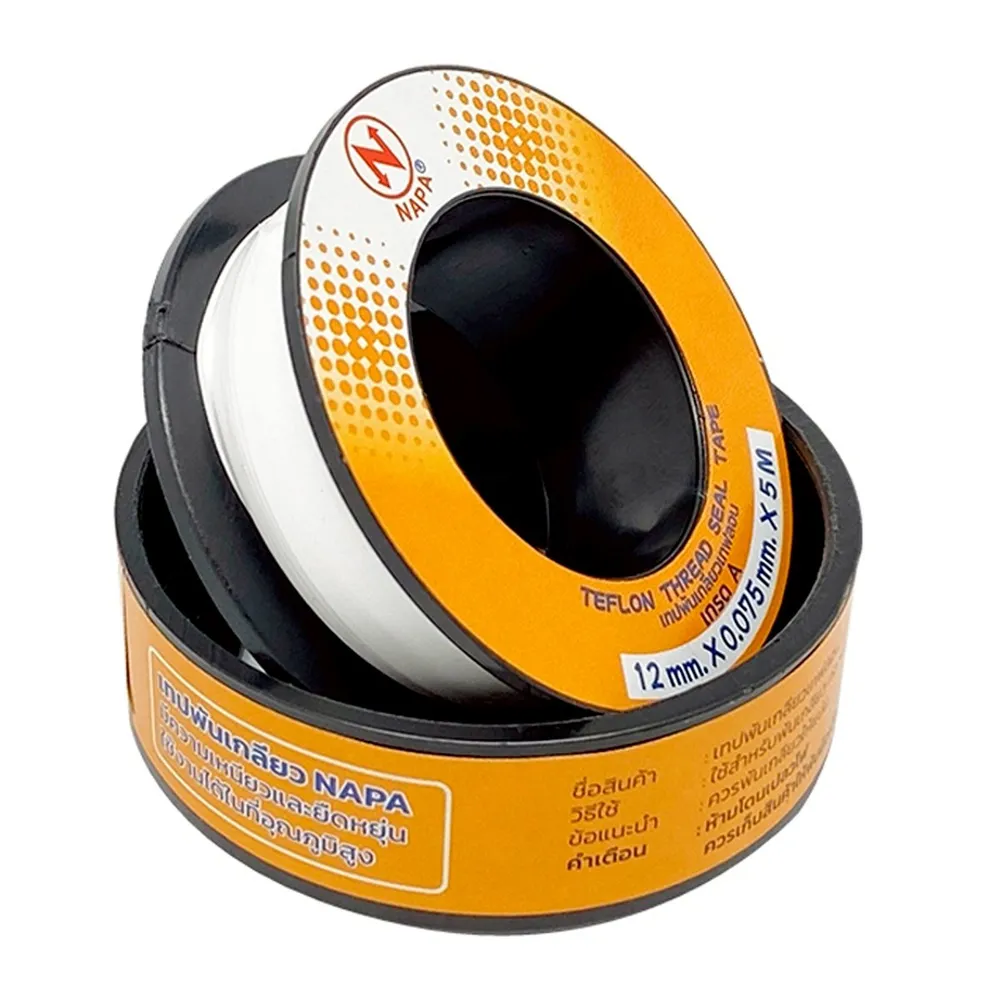 <p>นาป้า เทปพันเกลียวยาว 5 ม.<br /><br />ตอบโจทย์เรื่องบ้าน ครบทุกความต้องการของคุณ สั่งซื้อสินค้าได้ผ่าน Big C Online หรือมาช้อปสินค้าผ่านแอปฯ Big C Plus<br /><br />- ผลิตจากวัสดุคุณภาพดี ทนต่อสารทำละลาย และแรงเสียดทานได้ดี<br />- ปิดแนบสนิทกับร่องเกลียว ช่วยป้องกันการรั่วซึมได้อย่างมีประสิทธิภาพ<br />- เหมาะสำหรับงานประปาที่ใช้วิธีการสวมข้อต่อแบบเกลียวเป็นอย่างดี<br />- 12 มม. x 0.075 มม. x 5 ม.<br /><br /><strong>การรับประกันสินค้า</strong><br />รับประกัน 1 ปี<br />บริษัท นาป้า จำกัด<br />68 หมู่ 5 ถ.พุทธมณฑลสาย 4 ต.กระทุ่มล้ม อ.สามพราน จ.นครปฐม 73220 โทรศัพท์. 02-8131000<br /><br /><span style="color: #ff0000;">*บริษัทฯ ขอสงวนสิทธิ์ในการปรับเปลี่ยนราคาจำหน่ายและโปรโมชั่น รวมถึงแพ็คเกจและปริมาณสินค้าจากผู้ผลิตได้ตามความเหมาะสม โดยไม่จำเป็นต้องแจ้งให้ทราบล่วงหน้า</span><br /><br />*สีของสินค้าอาจมีความแตกต่าง ขึ้นอยู่กับการตั้งค่าของแต่ละหน้าจอ และภาพประกอบใช้เพื่อการโฆษณาเท่านั้น</p>