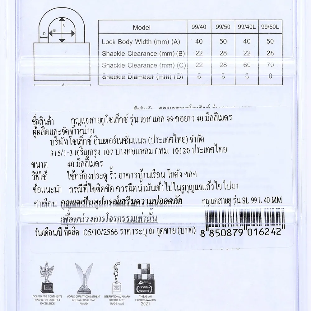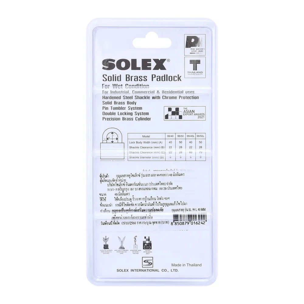 โซเล็กซ์ กุญแจสายยูคอยาว รุ่น SL99 L ขนาด 40 มม.