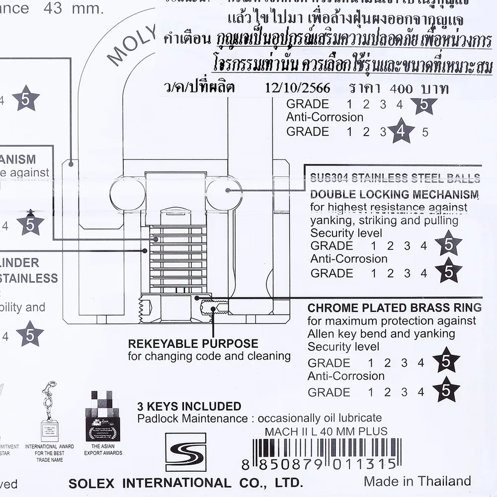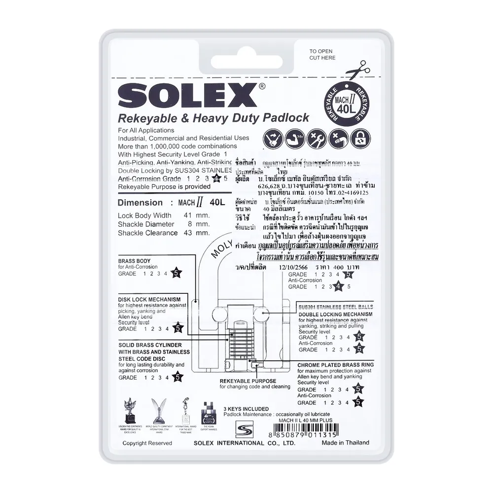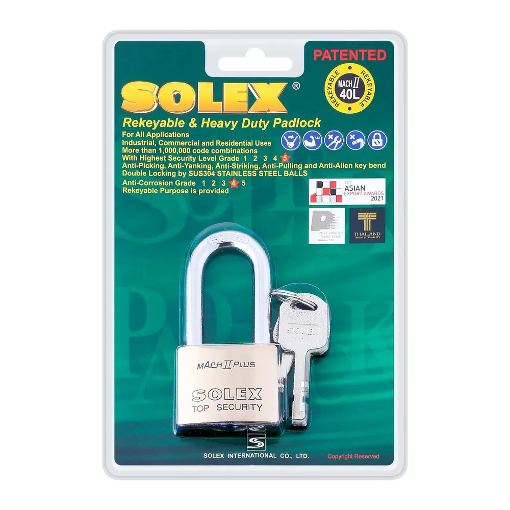 โซเล็กซ์ กุญแจคล้องสายยูคอยาว รุ่น MACH II PLUS L ขนาด 40 มม.